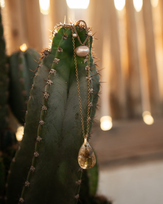 OYA Citrine et Perle d'eau douce Collier double