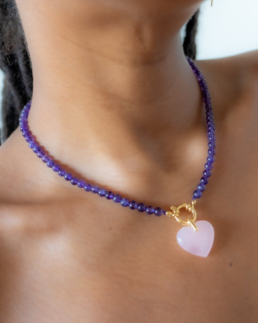 Colliers Bolingo - Pierres au Choix (Améthyste & Quartz-Rose ou Œil de Tigre)