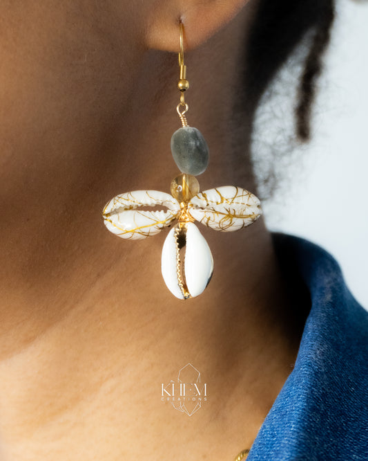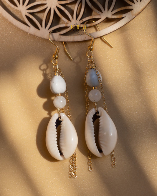 Boucles d'Oreilles Khaury – Cauris et Pierres au Choix