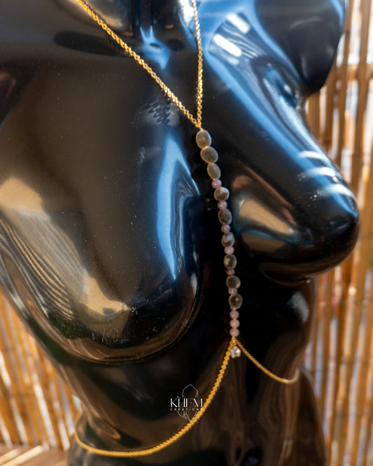 Chaîne de Corps Minona en Graine de Zanzibar et Quartz Rose
