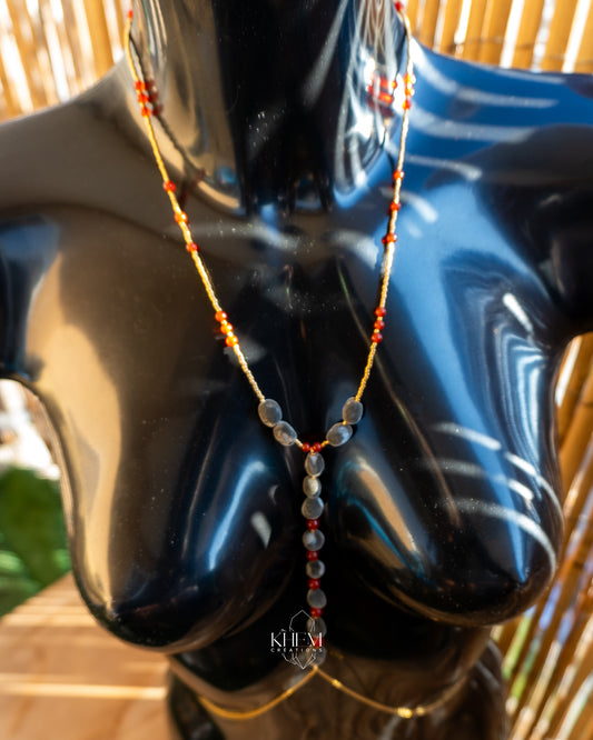 Chaîne de Corps Obatala en Cornaline et Graine de Zanzibar
