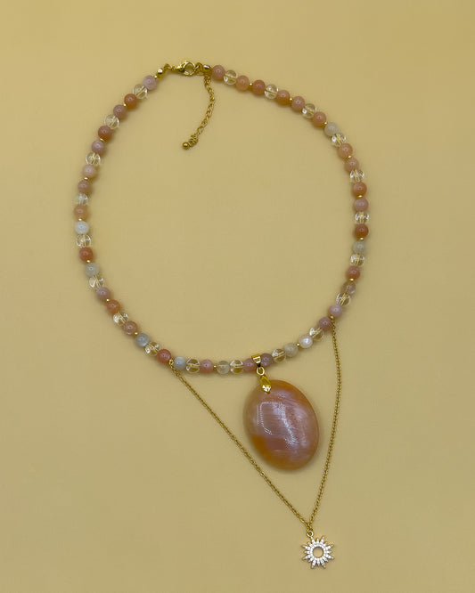 Collier SIA en Pierre de lune, pierre de soleil et cristal de roche