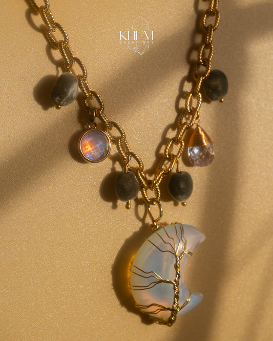 Collier Ashanty en Opaline, Opale et Graine de Zanzibar