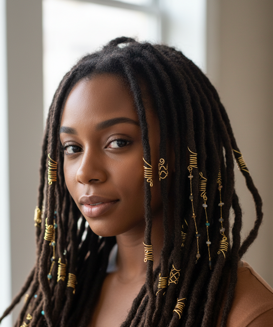 Bijoux de locks double spirales énergétiques – pierres naturelles au choix (Œil de Tigre, Howlite, Turquoise, Mix)